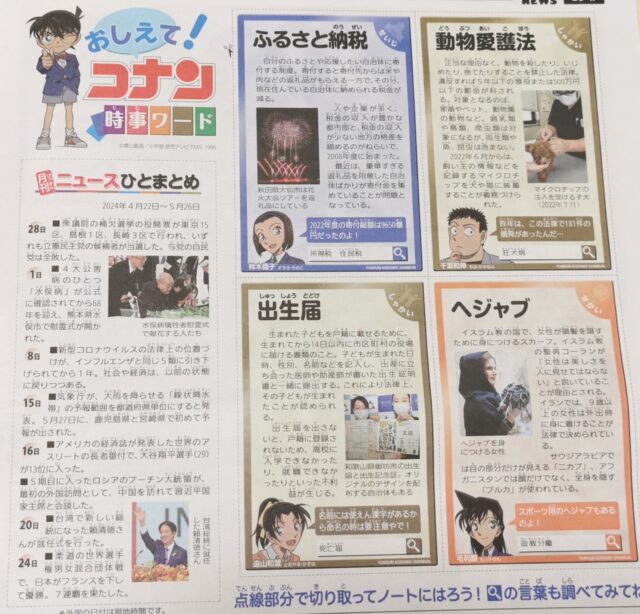 時事ワードは名探偵コナンが解説してくれるので、難しい用語も楽しく学べます。