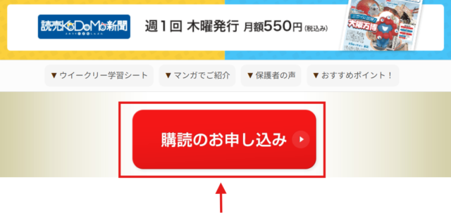 1.読売KODOMO新聞の申し込みページ内の各所にある「購読のお申し込み」のボタンのタップします。