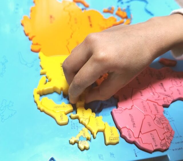 わが家はくもんの世界地図のパズルの方を持っていますが、立体のピースなので、低学年でもつかみやすく、置いたピースがずれにくいので、とても使いやすかったです。